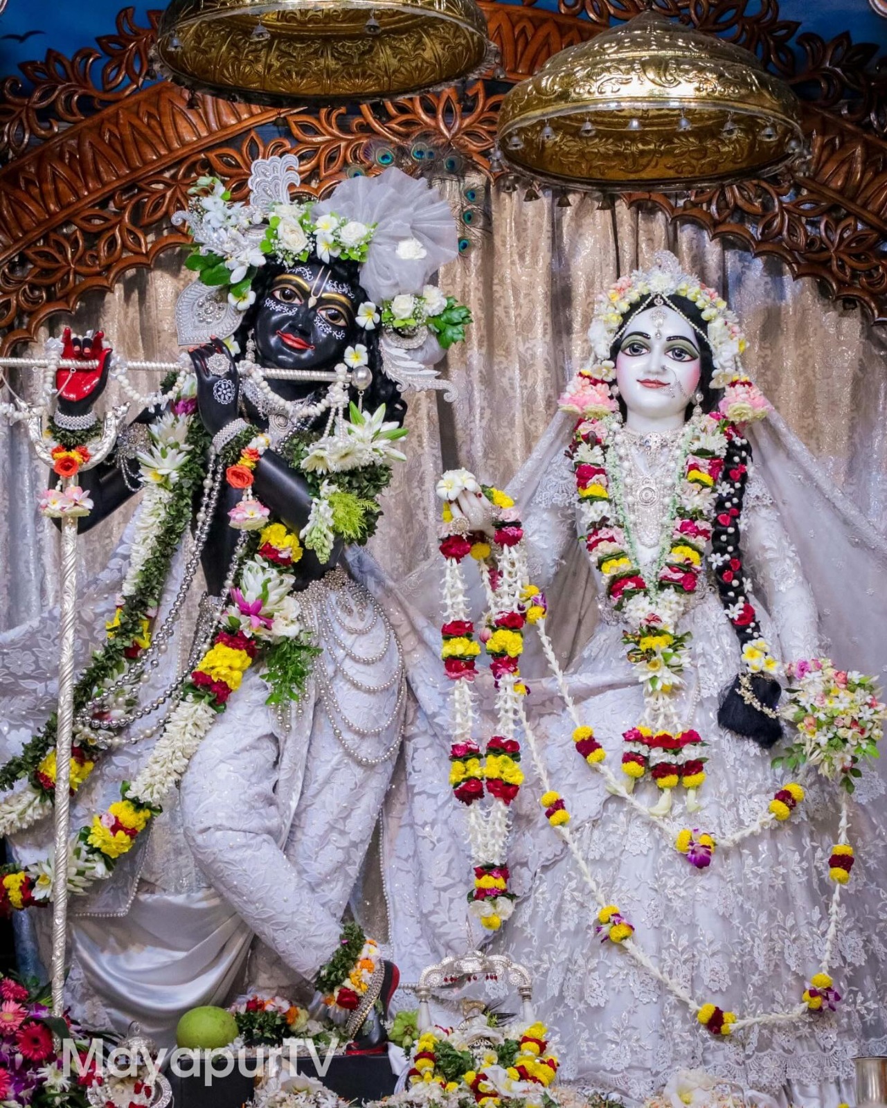 Gaura (Chaitanya) and Nitai (Nityananda) are worshipped as the most merciful forms of God. They gave the holy names of Krishna freely to everyone, without considering background or qualification. Together, they are considered the reincarnation of Radha and Krishna in one body.